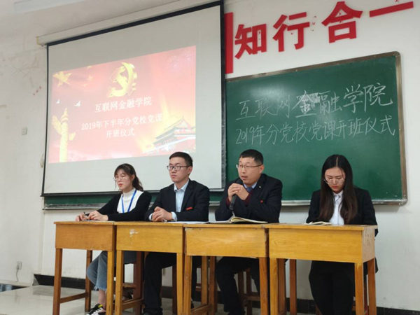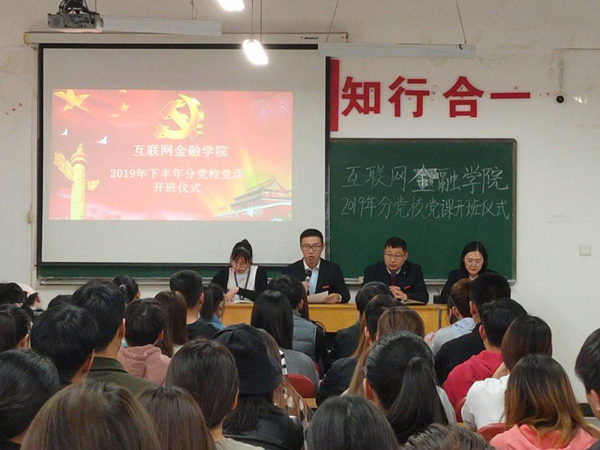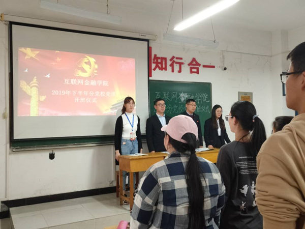 11月1日中午,互联网金融学院2019年下半年入党积极分子党课培训班开班仪式在J7-213进行。互联网金融学院党总支书记杨贵仓、团总支书记余永明参加开办仪式。仪式由靖婷婷老师主持。