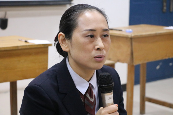 个人赛结束后,平顶山银行会计主管曹丽霞老师上台,发表了她对于前两场比赛的感想,并现场对同学们演示了单指双张的点钞技能。
