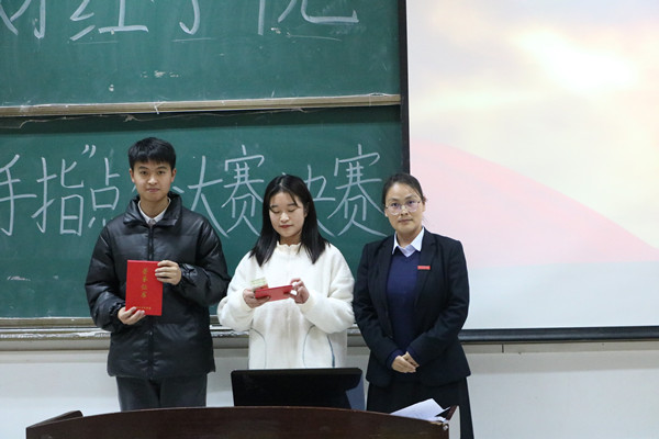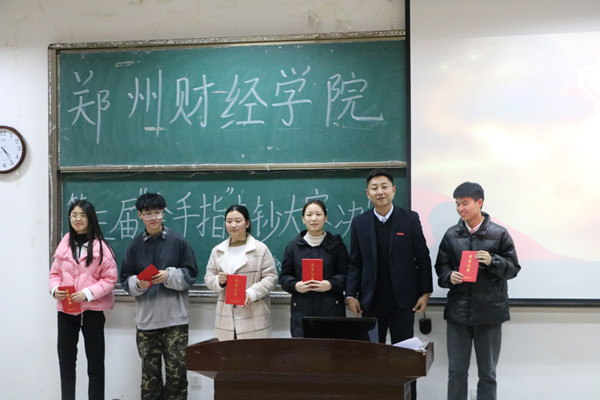 最后由党总支副书记刘冠勤上台为个人赛第二第三等奖的同学颁发证书,由平顶山银行行长王卫军为个人赛第一等奖获得者颁奖,团总支书记梁琦为团队赛第一名颁奖,并合影留念。