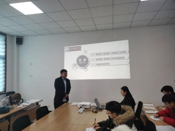 会议首先进行学生第一和第二党支部书记述职,学生第一党支部书记佘明媛和学生第二党支部书记李文带领大家回顾了过去一年工作中的得失,展望未来,部署了下一年的工作安排。述职完毕后,各位学生党员对党支部工作通过填写评议表的形式进行了评议。