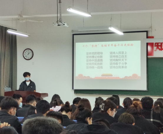活动开始,学生第一党支部书记佘明媛宣讲十九届六中全会精神,包括不忘初心、牢记使命,进一步增强“四个意识”、坚定“四个自信”、做到“两个维护”,埋头苦干、勇毅前行,用心、用情、用力答好新时代老干部工作新答卷,不断创造出不负党和人民期望、不负老干部期待的新业绩。