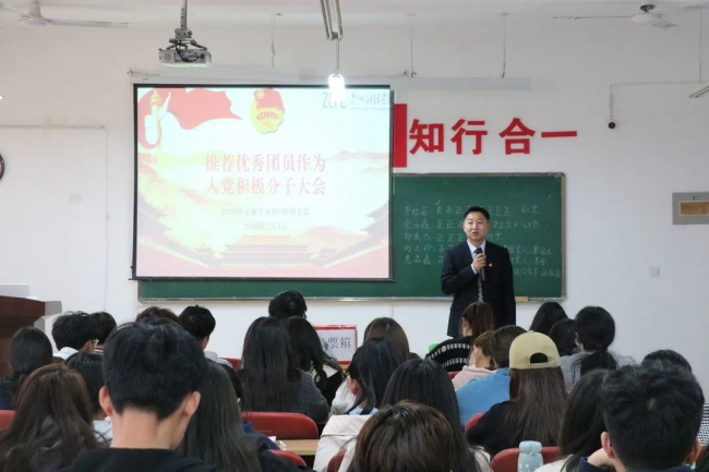 金融学院积极响应校团委的号召,规范推优入党的流程,加强入党积极分子的队伍建设,于3月4日下午在丽苑209教室开展了推优大会观摩活动。本次大会的示范对象为2020级金融学本科专业3班团支部,与会人员有团总支书记梁琦、2020级金融学本科专业3班团支部全体团员以及2019级、2020级、2021级团支书。