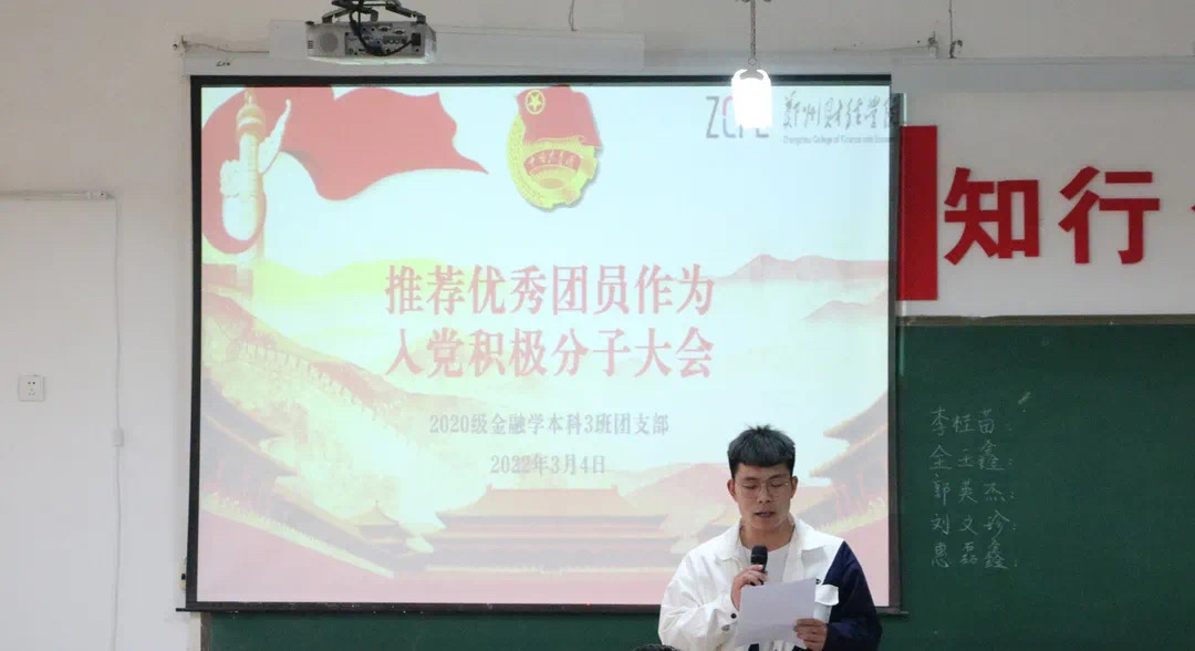 会议开始,由团支部书记宣读入党推优的具体流程并向全班同学汇报推优对象的基本情况。候选人分别上台演讲,从思想政治、道德品行、作用发挥、执行纪律等方面进行自我评述,并详细介绍了自己的入党动机和对于中国共产党的认识与感悟。最后,2020级金融学本科专业3班团支部全体团员通过无记名投票的方式进行民主评议,经过公开发票、收票、唱票等一系列过程后,根据投票结果,评选出了本次大会的入党积极分子,并在团支部公示栏予以公示。活动结束后,团总支书记梁琦进行总结讲话。他提出,作为基层团组织,我们应该努力把共青团锻造成为新时代党的得力助手和可靠后备军,要规范推优入党流程,真正把团员中的先进分子推荐给党组织。