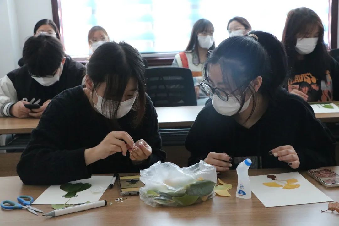 活动中同学热情、积极、自信的态度,充分表现出我院青年学子青春洋溢的姿态与乐于助人的文明礼仪。本次活动,通过落叶的手工制作,帮助同学们从周围一景一物的美妙之处发现大自然的美,希望同学们可以透过它们有趣的形象,感受一草一木的生命力,养成热爱大自然、感受美、创造美的优良习惯。