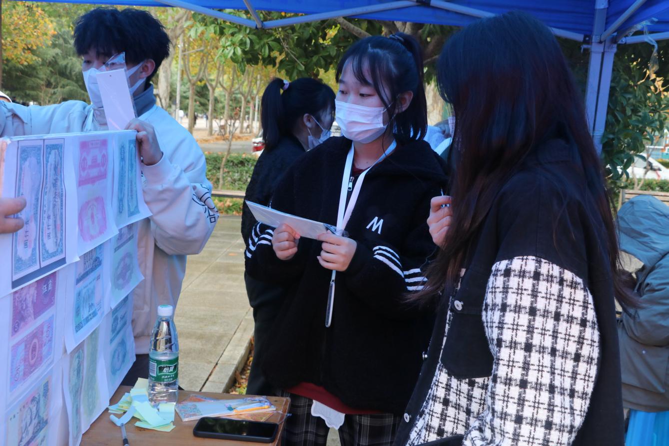 为了让更多的人了解到货币相关知识,通过闯关、游戏等方式,让同学们在了解货币知识的同时也丰富课余活动。闯关答题活动吸引许多同学参与其中,随着答题的人越来越多,工作人员忙的不可开交,秋日寒风并没有吹散学生们的答题热情,活动仍在有序开展。