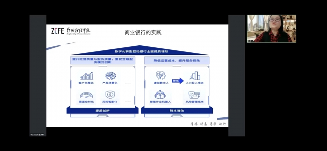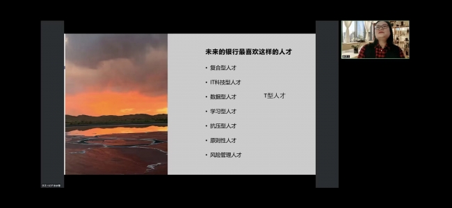李芝兰从银行业的发展现状讲起,用大量的数据和案例从五个方面对银行业发展趋势进行了阐述,重点对银行的数字化转型进行了分析,结合银行的数字化转型,对银行业对人才的需求进行了讲解。讲解完毕,与线上的同学进行了互动和交流。李芝兰教授在讲座中真实的案例导入、详实的数据分析和对银行业数字化转型的独到见解给与会的各位同学留下了深刻的印象。