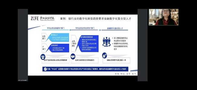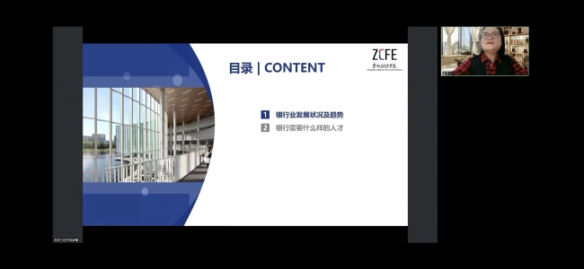 为了帮助2022级新生更好地了解专业发展趋势,规划大学生活,明确未来目标和发展方向,11月15日晚,金融学院特聘教授李芝兰通过线上为新生开展以“银行业发展趋势与数字化转型下的人才需求”为主题的专业认知教育讲座,讲座由金融学院党总支副书记刘冠勤主持。