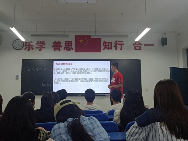 此次班会勉励同学们要深刻认识维护国家安全的重大意义,牢固树立总体国家安全观,深入学习贯彻国家安全法规,切实筑牢维护国家安全的根基,以实际行动坚定捍卫“两个确立”、坚决做到“两个维护”,要努力将个人前途命运融合到国家的发展中,和祖国同呼吸、共奋进。