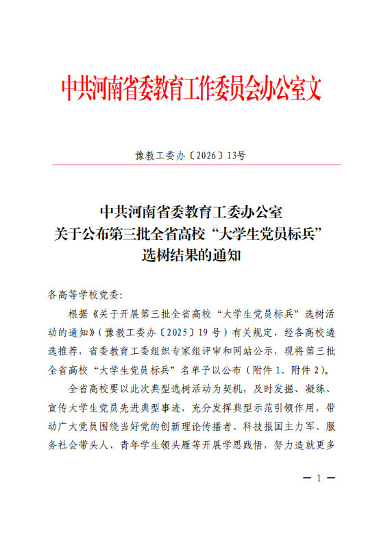 学校高度重视此次评选工作,严格按照《中共河南省委教育工委办公室关于开展第三批全省高校“大学生党员标兵”选树活动的通知》要求,部署并推进选树推荐工作。