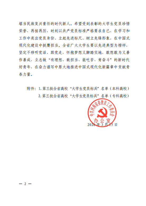 该生荣获省级“大学生党员标兵”称号,不仅是学生个人不懈奋斗的成果,更是学校坚持立德树人根本任务、将党建工作与人才培养深度融合的生动体现。学校将持续坚守为党育人、为国育才的初心使命,引导广大青年学生党员以标兵为榜样,坚定理想信念、锤炼过硬本领,让青春在推进中国式现代化征程中绽放绚丽之花。